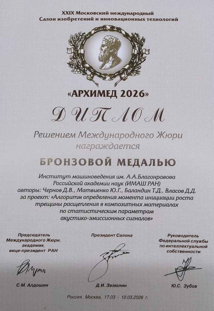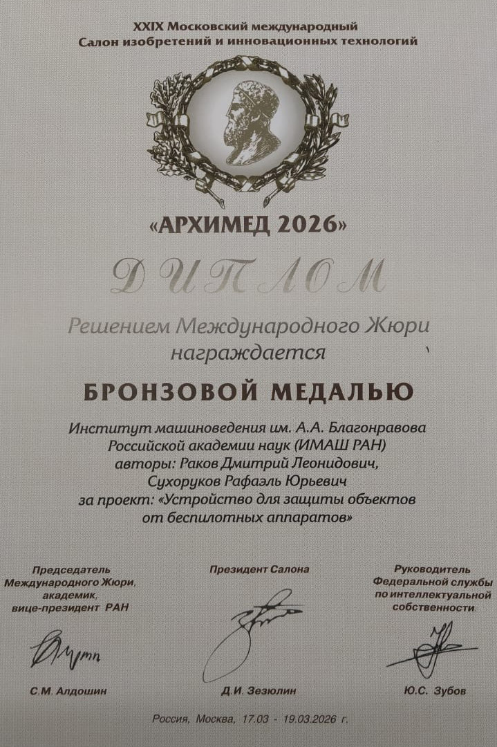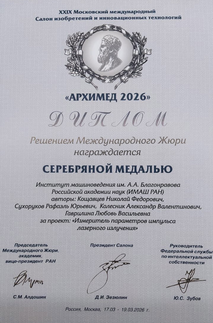 Разработки ИМАШ РАН получили высокую оценку Международного Жюри салона «Архимед-2026».