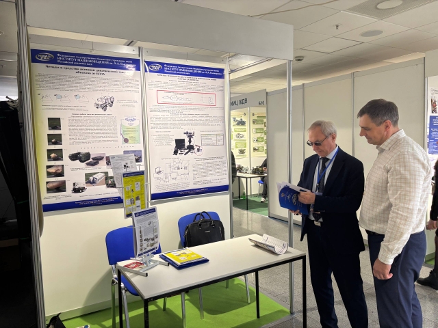 Стенд ИМАШ РАН был представлен результатами исследований лаборатории управления технологическими процессами и системами - зав. лаб. к.т.н. Сухоруков Р.Ю. и лаборатории моделирования повреждений и разрушения машин - зав. лаб. д.т.н., проф. Матвиенко Ю.Г.